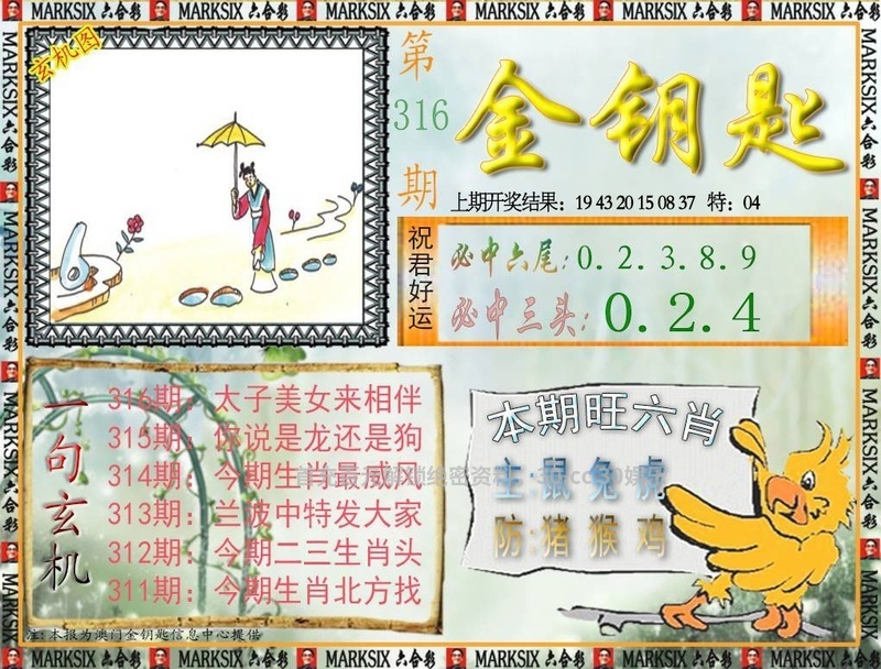 319期一字記曰:【奔】 为口奔驰,为势所逼,羽翼未丰也抢食。一分收获,十分努力,适者生存要积极。 玄机测字《注》 解:含桃庄主后园深:后园深解后肖狗鸡猴猪马羊。 综合取肖:狗鸡猴猪马羊 |